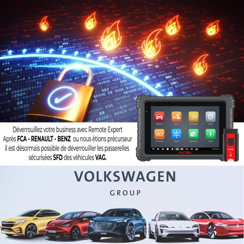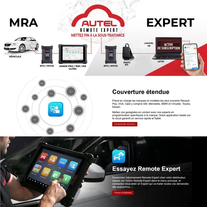 Services Remote des experts à distance à votre serviceDéverrouiller un Gateway, mettre à jour un BSI, reprogrammer un ECU, coder un attelage… sans sous-traitance !!! C’est désormais possible, sans aucune action de votre part, grâce à notre nouvelle fonction Remote Expert, directement accessible dans les outils de diagnostic AUTEL MS906 PRO TS /AUTEL MS906 PRO / MS909 /MS919 / ULTRA